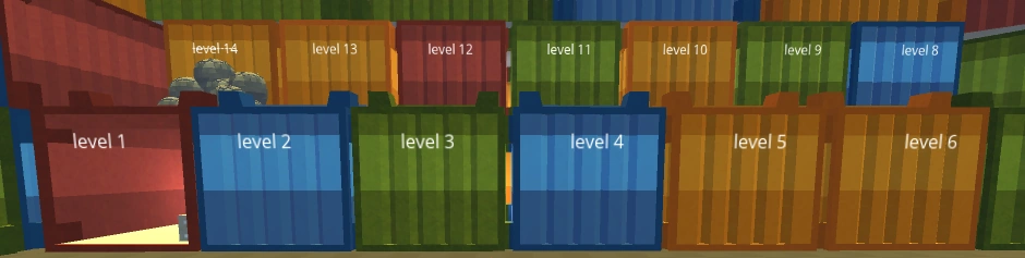You have to enter on the Containers. To do it so, complete the actual level. Once you've finished it, a Star and a Key will appear. Pick both and walk into the next container; due to the Key, you can advance to the next level. Every Star will be collected when you finish the last level.
