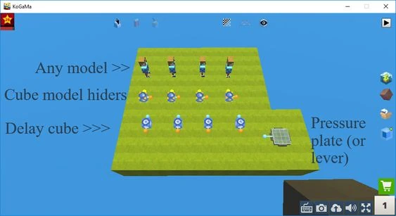 A logic animation system is usually made with the following logic cubes: Delay Cube, Cube Model Hider, Pressure Plate or Lever, and any models you want to animate.