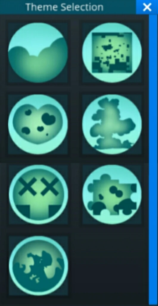 Existem 7 estilos diferentes que você pode escolher para o seu jogo. Cada tema tem o mesmo preço, mas não o mesmo resultado.