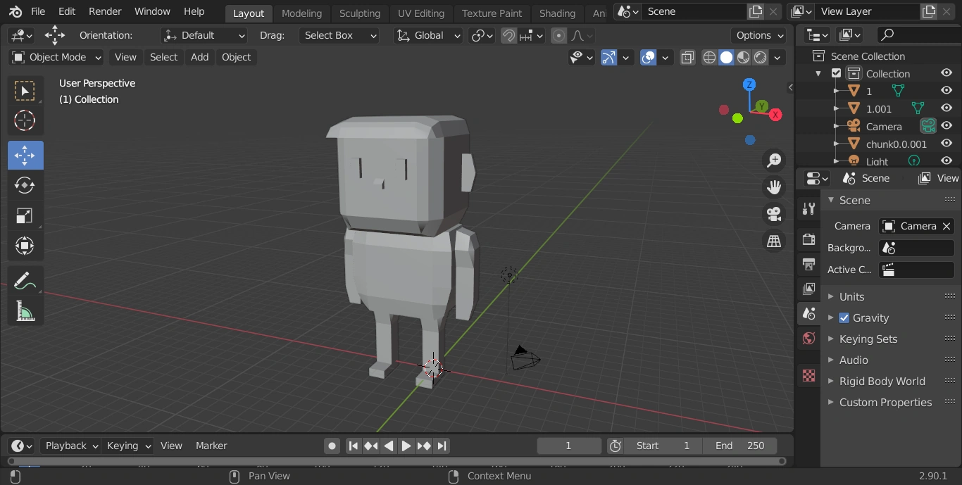 L'objet 3D "chunk0.0.00" affiché dans Blender.